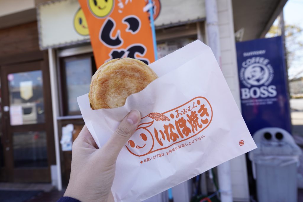 おやきみたいなまん丸の いなほ焼き は1個100円とコスパ抜群。大判焼きくらいのサイズ感です。