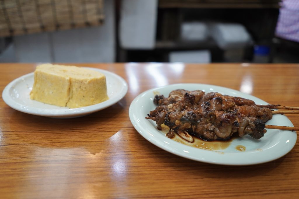 食べ歩きグルメとしてはタコの串が有名ですが、この日私が頂いたのは、だし巻き卵100円と鰻肝1パック500円。