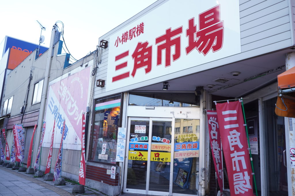 その名も小樽三角市場といって、本当に細長い三角形の形をした市場なんです。