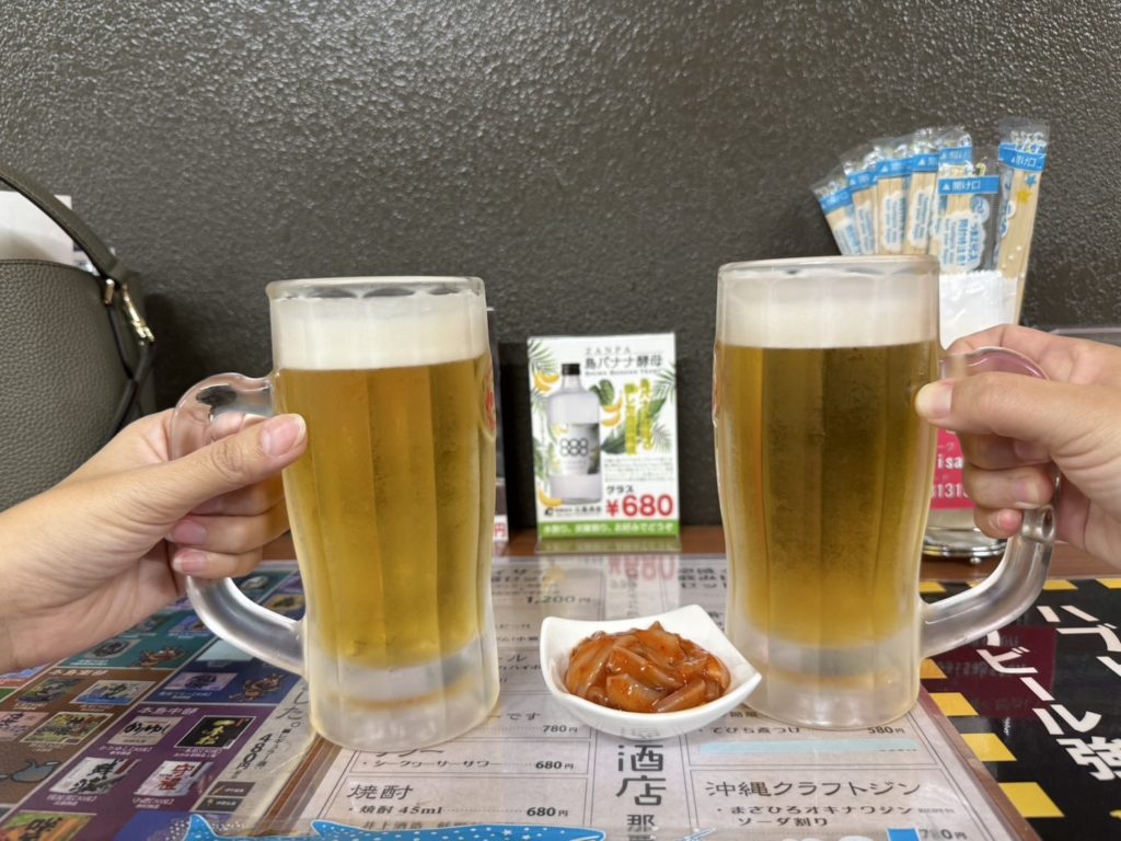 もともとは大衆酒場文化がルーツらしいですが、沖縄ではすっかり日常で、昼からやっているお店もあるし、はしご前提なので気軽に入れます。最近は物価の影響で1200円〜などに調整するお店も増えていますが、それでも十分お得感はあります。