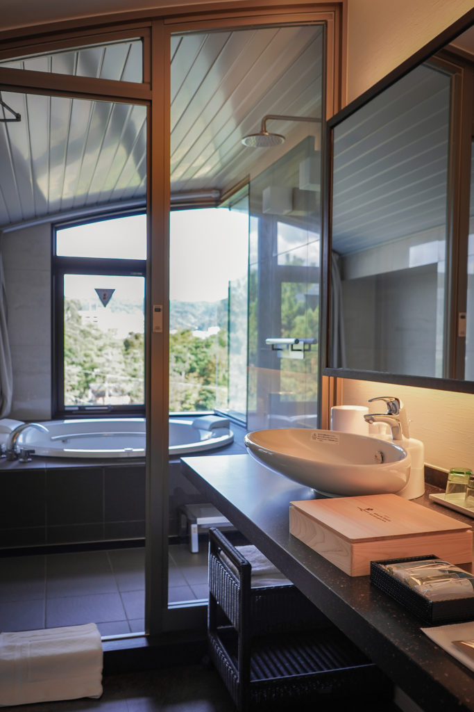 夕方にビールを軽く飲みながらゆっくり入浴。鴨川の景色を眺めながらのお風呂は、最高に贅沢な時間でした(ちなみに飲酒後の入浴は推奨しません!)