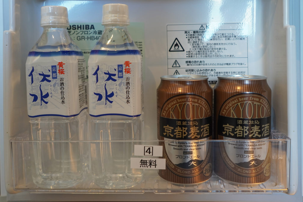 そして冷蔵庫の中には無料のお水と京都の地ビール!