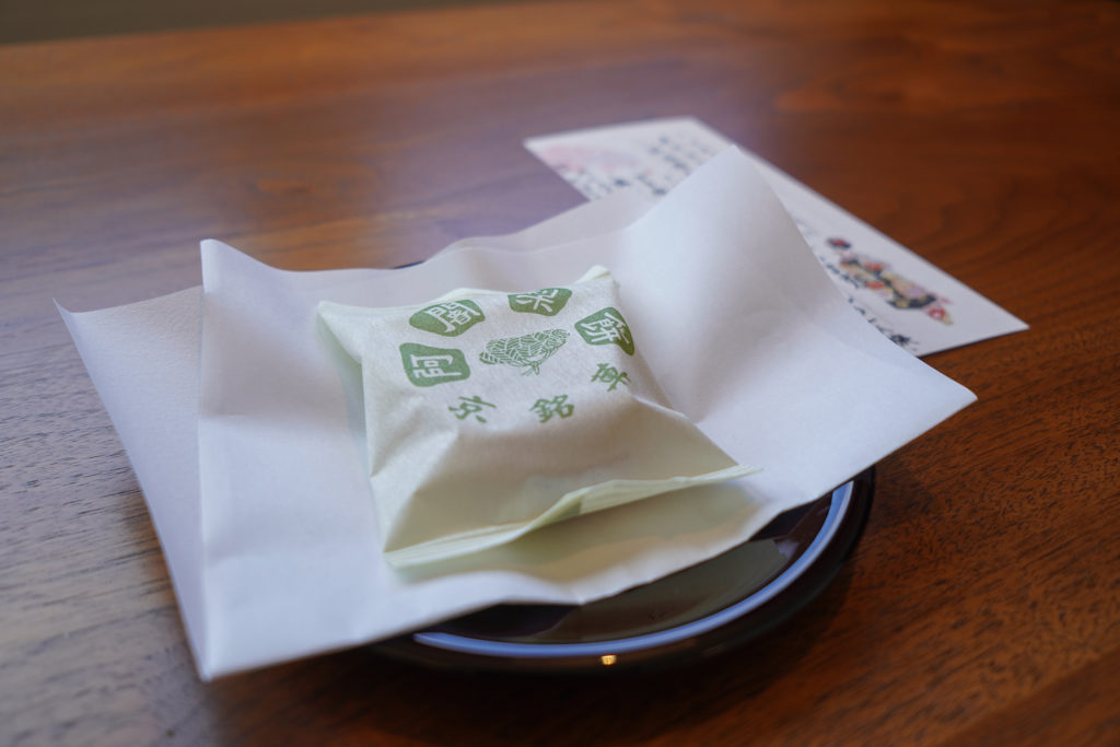 チェックインすると、テーブルの上には手書きのメッセージとお茶請けの阿闍梨餅が。