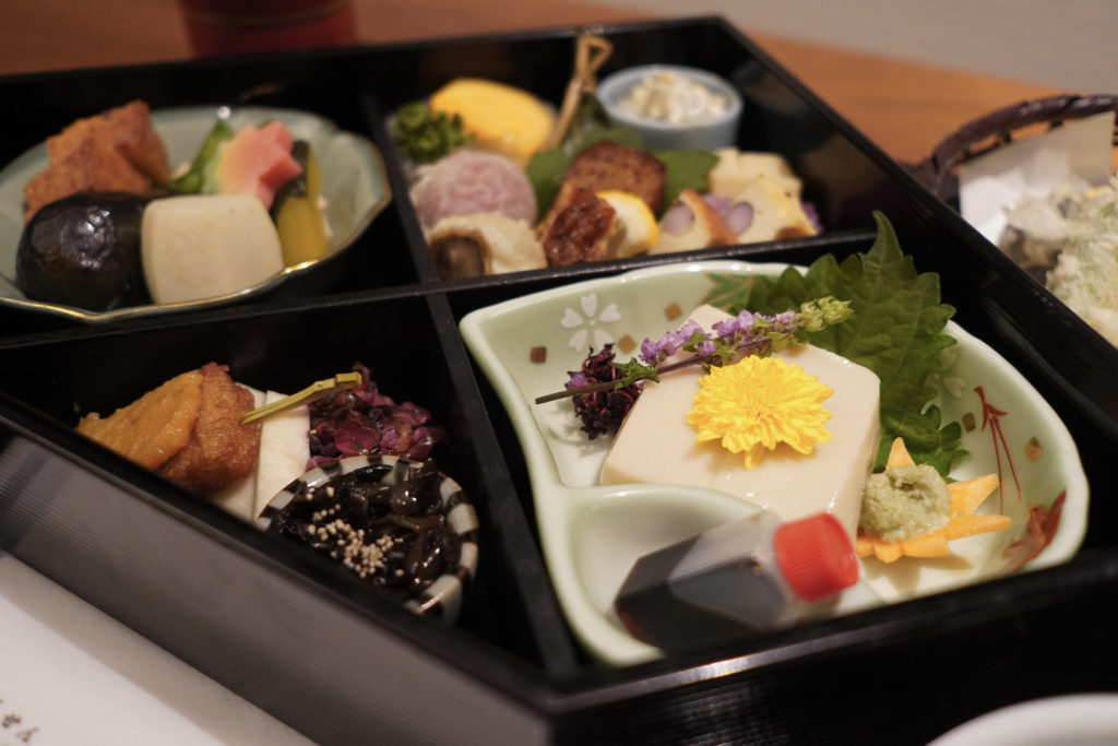 まずは夕食がこちら。この日は泉仙さんの精進料理を頂きました。