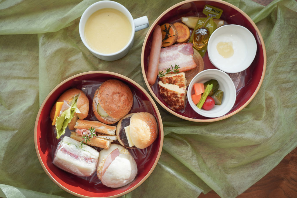 中身はこんな感じで、ベーカリー朝食です。すっごい豪華で朝から幸せ!